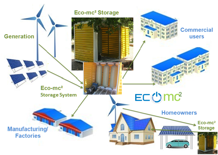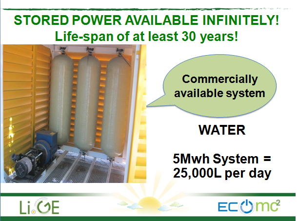that helps renewable sources store what they've produced!   Unlike batteries, we do not wear down  -  we're with you for life!  Unlike grid- enabled storage, we do not have carbon emissions!